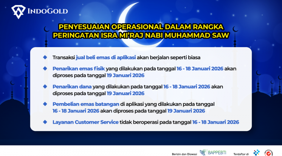 Dalam rangka memperingati tahun baru 2026, berikut informasi penting yang perlu kamu ketahui mengenai jadwal operasional IndoGold: Transaksi jual beli emas di aplikasi tetap berjalan seperti biasaPenarikan emas fisik yang dilakukan pada tanggal 16-18 Januari 2026, akan diproses pada …