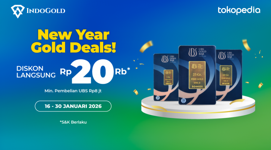 Awal tahun 2026 enaknya uangnya diduluin dipake buat nabung. Apa lagi ada diskon yang bikin kamu makin cuan. Ambil diskonnya sekarang dengan melakukan transaksi pembelian emas batangan UBS minimal 8 Juta di Official Indogold di Tokopedia kamu berkesempatan dapatkan Diskon langsung Rp20 …