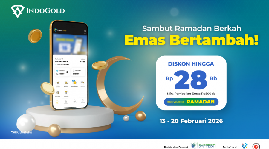 Sambut Ramadan Berkah. Cuan konsisten dengan banyak diskon emas setiap hari! Nabung emas min. Rp500 ribu di aplikasi IndoGold dan dapatkan diskon hingga 1,5% maksimal potongan Rp28 ribu. Catat tanggal promonya : 13-20 Februari 2026 Masukkan kode voucher ini pada saat check out : …