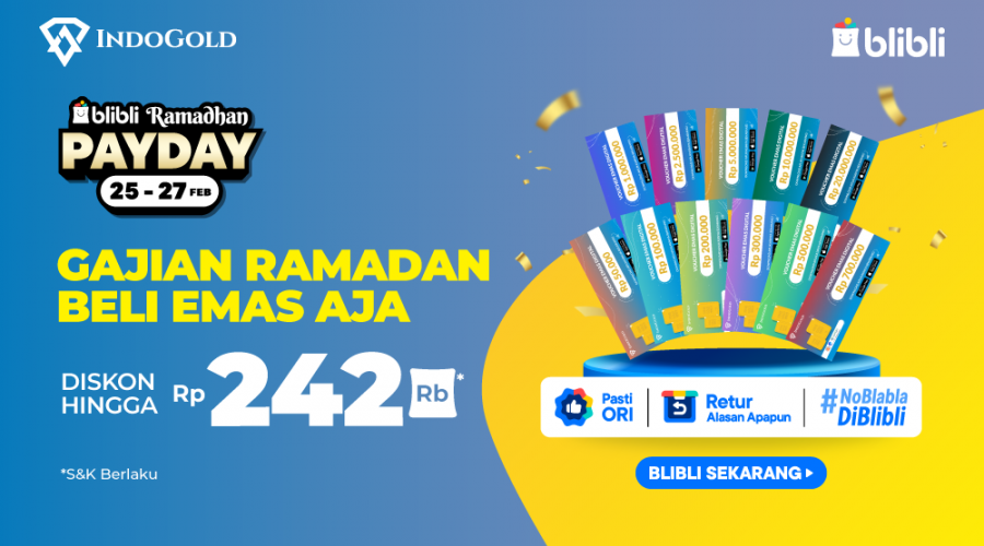 Jangan ketingalan diskon emasnya Blibli Big Pay Day Februari 2026. Gajian Ramadan beli emas aja. Cuma 3 hari loh..! Udah gajian? Waktunya nabung emas pakai diskon Blibli Big Pay Day Diskon hingga Rp242 ribu pada periode promo 25- 27 Februari 2026 Syarat & Ketentuan: Kuota …