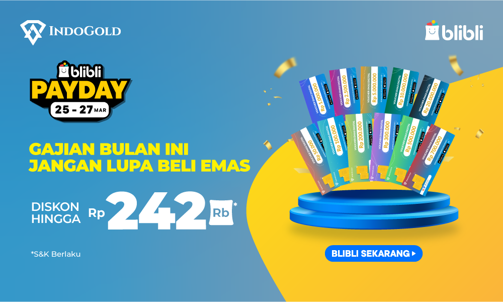 Jangan ketingalan diskon emasnya Blibli Big Pay Day Maret 2026. Gajian beli emas aja. Cuma 3 hari loh..!