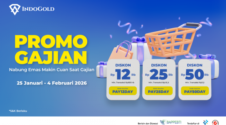 Nabung emas makin cuan saat gajian! Khusus untuk kamu nabung emas di aplikasi IndoGold ada diskon langsung potongan hingga Rp50 ribu Tiga skema promo: Diskon langsung 12,000 min. belanja Rp800 ribu. Kode voucher (PAY12DAY)Diskon langsung 25,000 min. belanja Rp1,6 juta. Kode voucher …