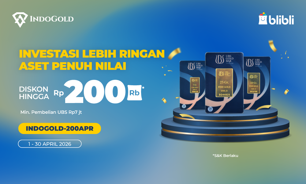 Dapatkan diskon hingga Rp200 ribu, dengan minimal pembelian Rp7 juta khusus emas UBS.
