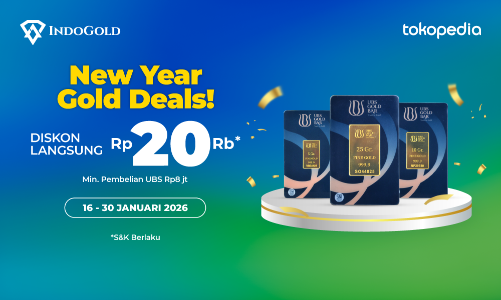 - Diskon hanya berlaku untuk pembelian emas batangan UBS, dengan minimal pembelian 8 Juta di Official Indogold di Tokopedia Diskon langsung Rp20 ribu