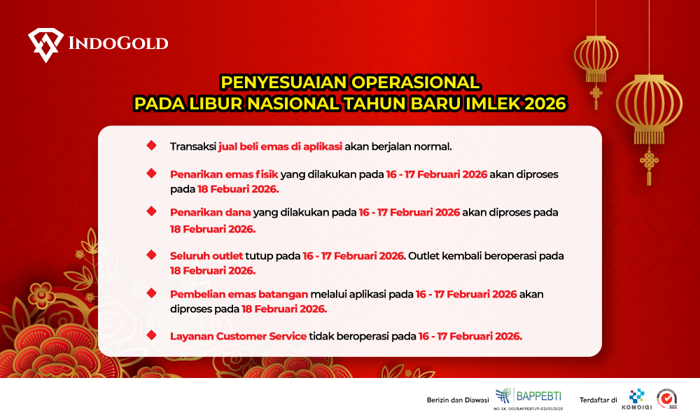 Dalam rangka memperingati tahun baru Imlek 2026, berikut informasi penting yang perlu kamu ketahui mengenai jadwal operasional IndoGold: