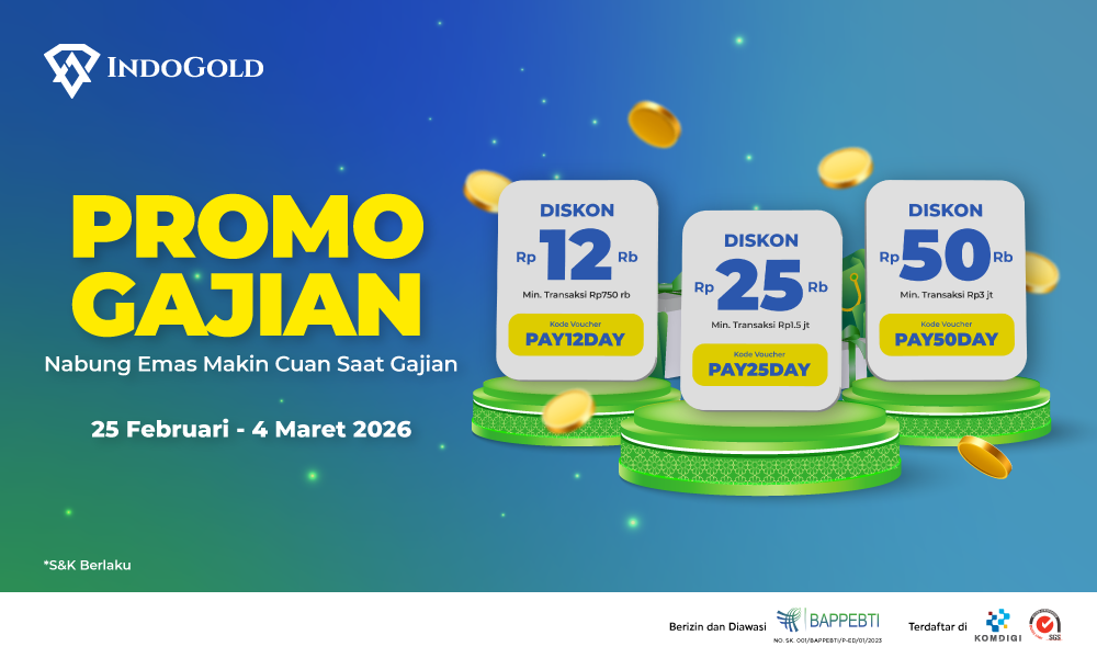 - Minimal transaksi Rp750 ribu, Rp1,5 juta, Rp3 juta di aplikasi IndoGold dan tanpa memasukkan kode voucher promo lainnya (tidak dapat digabungkan dengan promo lainnya).