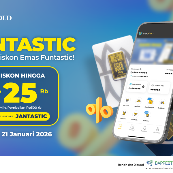 - Berlaku untuk 400 verified member tercepat yang melakukan pembelian emas di aplikasi IndoGold.