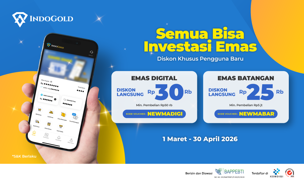 - Kode voucher hanya berlaku untuk pengguna baru aplikasi IndoGold