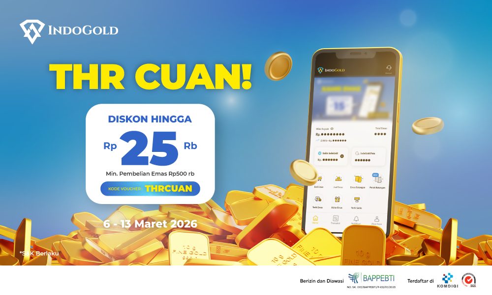 THR sudah cair? Mending dipakai buat nabung emas. Cuan konsisten dengan banyak diskon emas setiap hari!